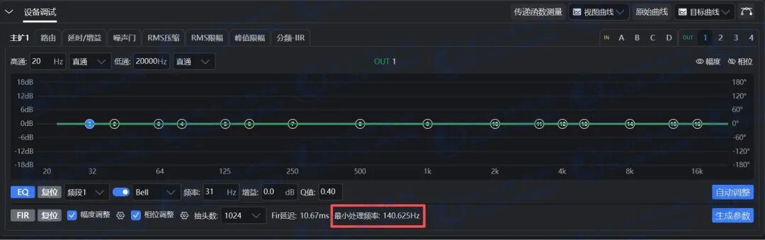 对工程师而言,FIR 滤波器作用下限 ≈ 频率分辨率 × 3,是一个非常实用的经验法则。它基于窗函数主瓣宽度与过渡带的特性,帮助我们更真实地估计滤波器的低频控制能力。谛听声学仿真测量软件正是基于这一规律,在自动 FIR 功能中根据抽头数给出合理的最低下限频率,帮助工程师们快速判断滤波器最低有效可控频率,减少不必要的复杂计算,让滤波器在实际应用中达到最佳效果。